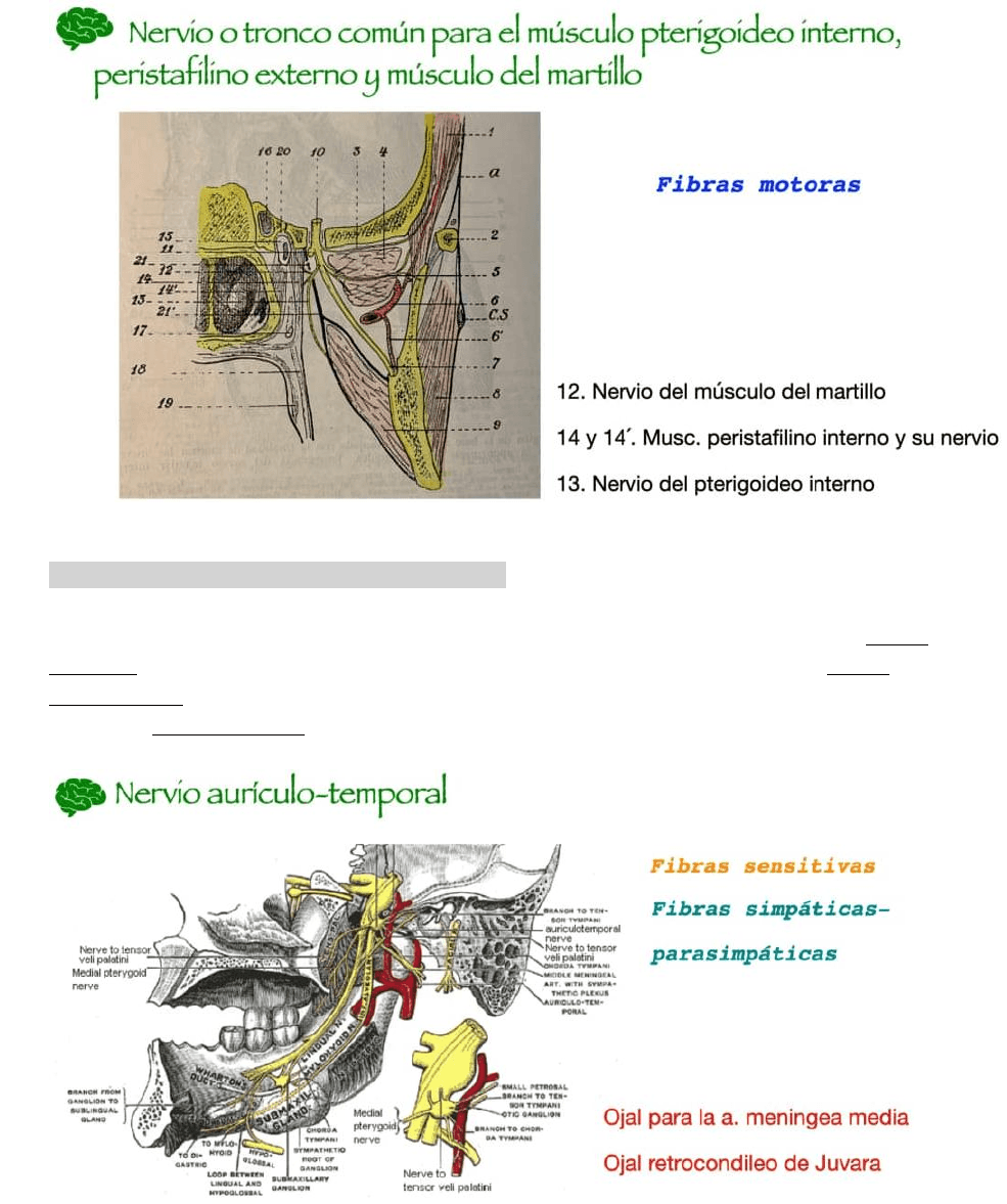 auriculo-temporal y con el n. lingual va a transportar fibras simpaticas y parasimpaticas, por lo que estas