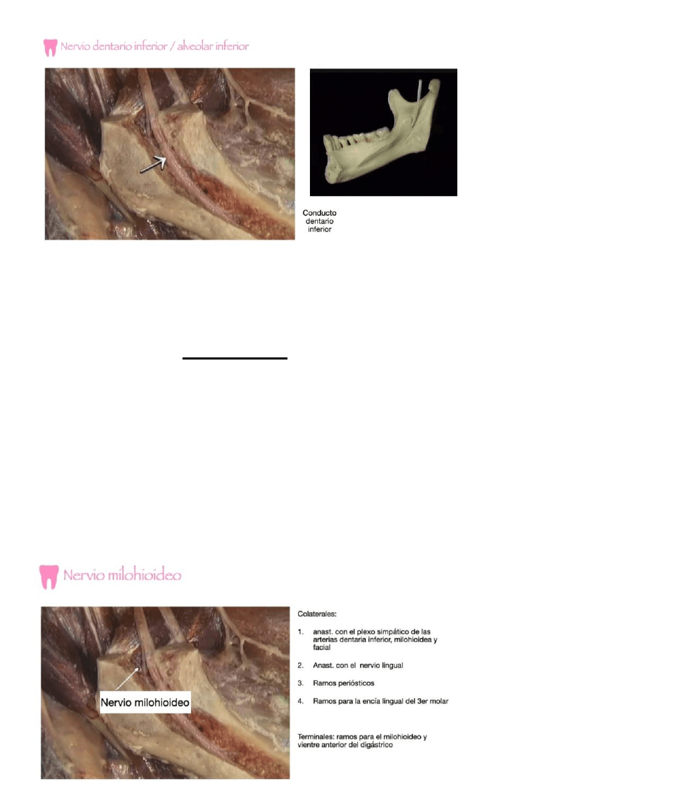 dentario inferior hasta la zona de los premolares donde emite sus dos ramas terminales.