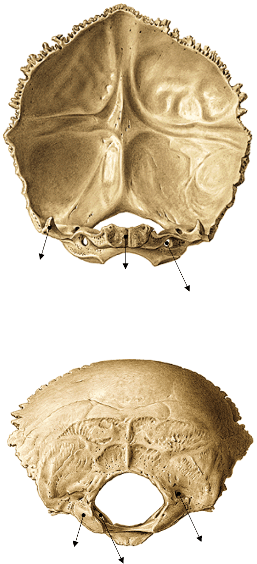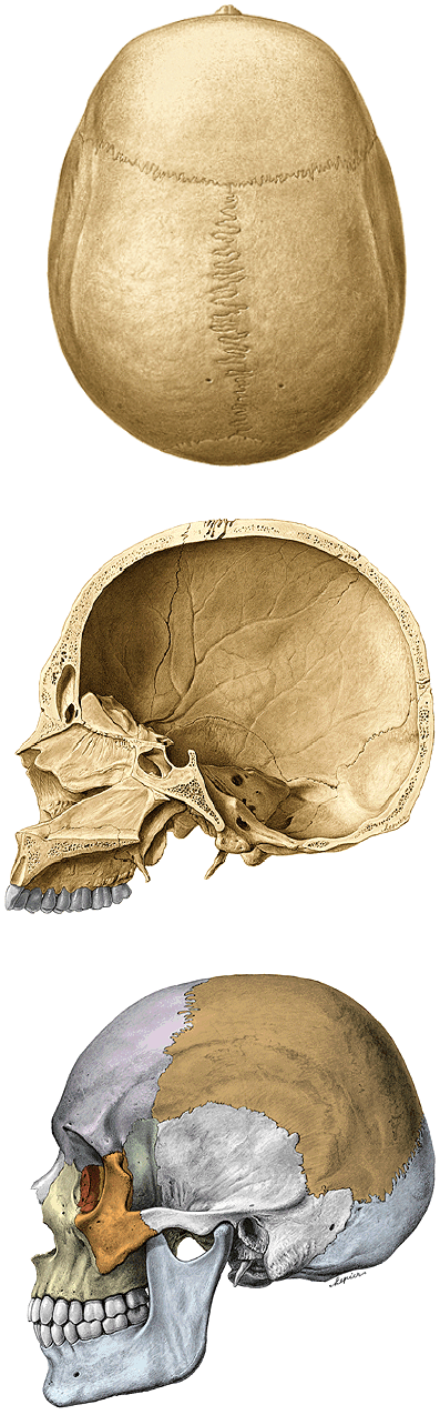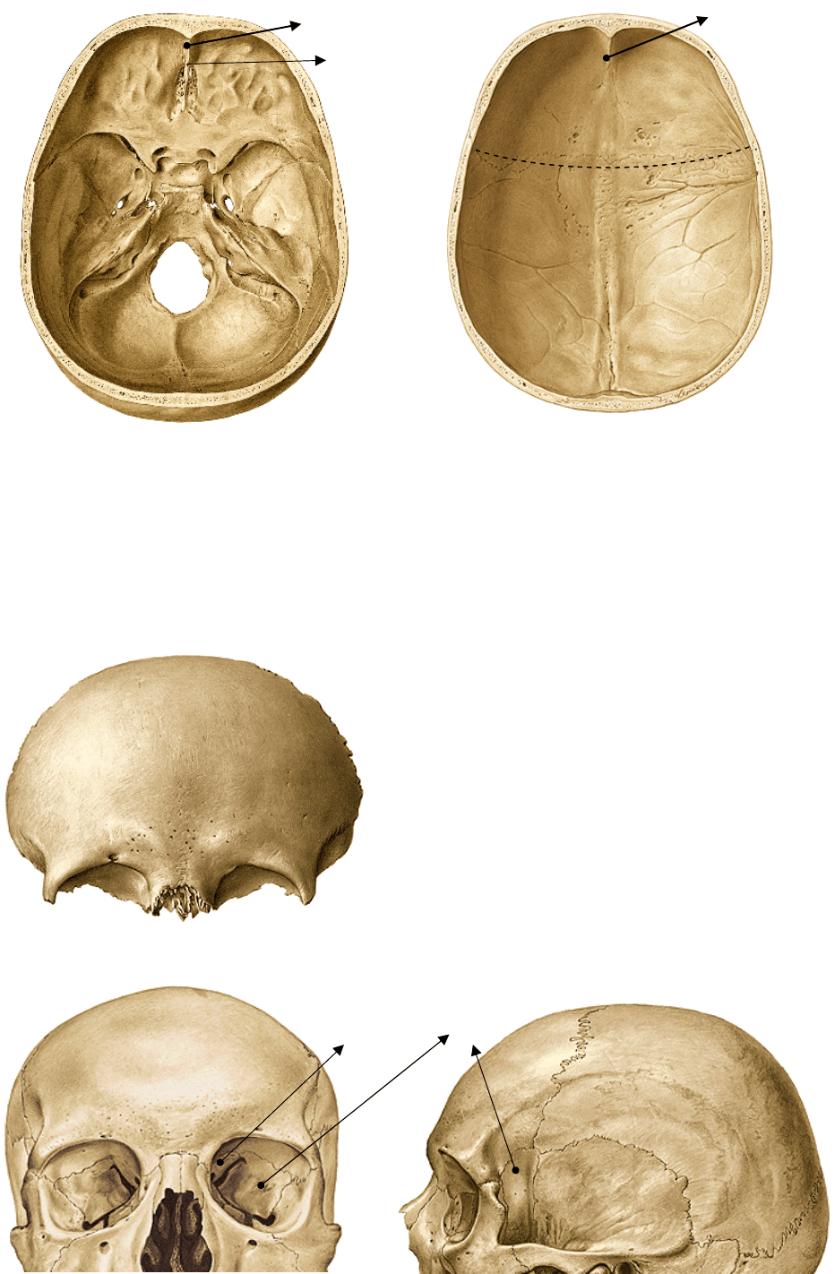Para su descripción, al frontal se le distinguen 2 caras: una exocraneal y una