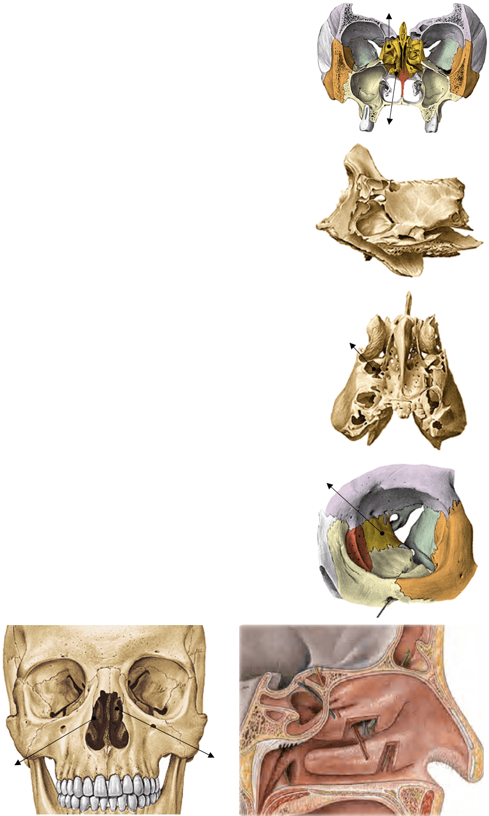 formando por su cara inferior parte de la órbita (techo) y de las fochas nasales, por lo que
