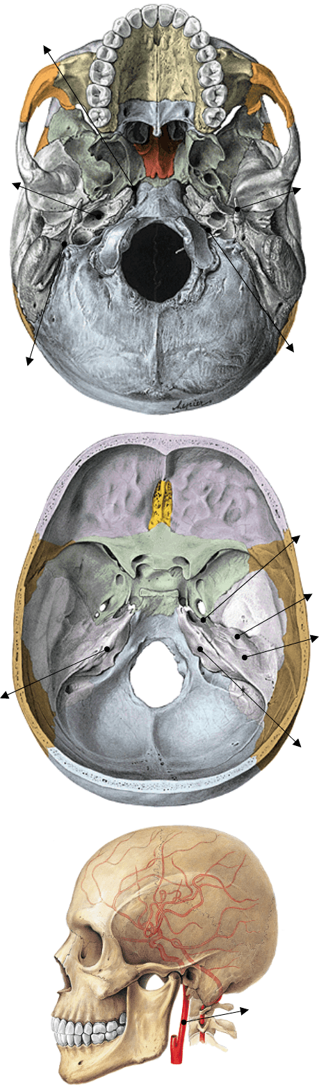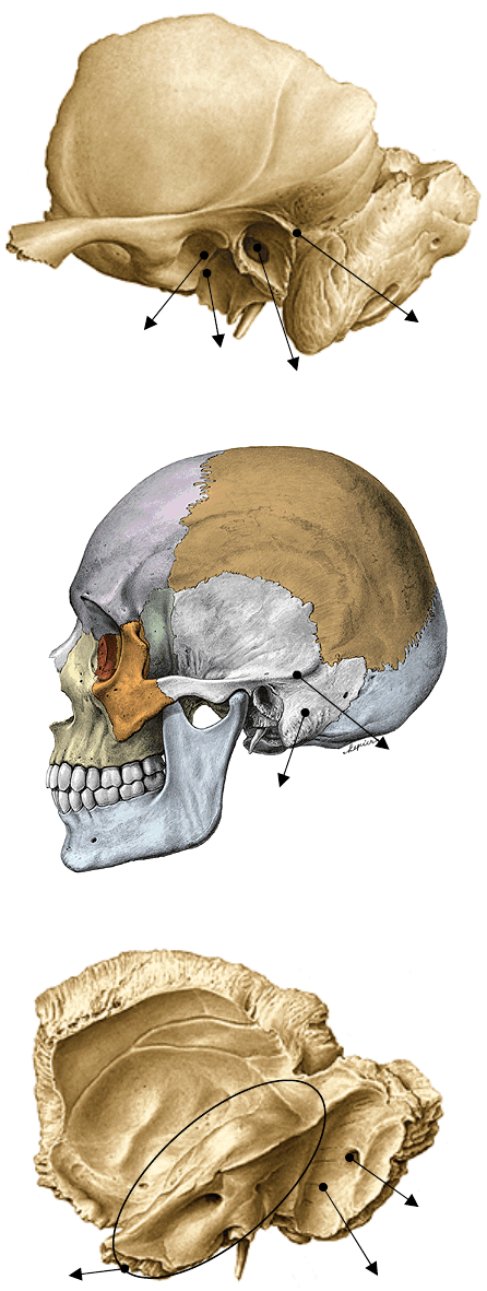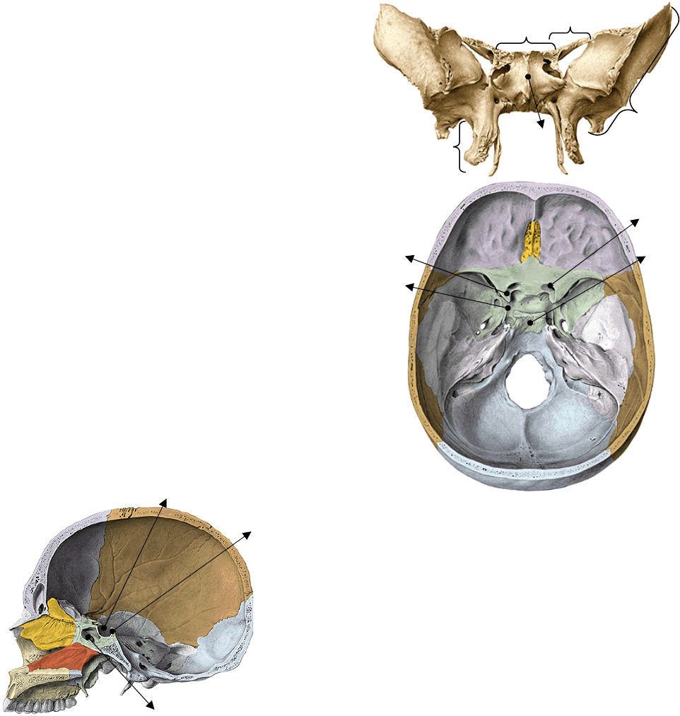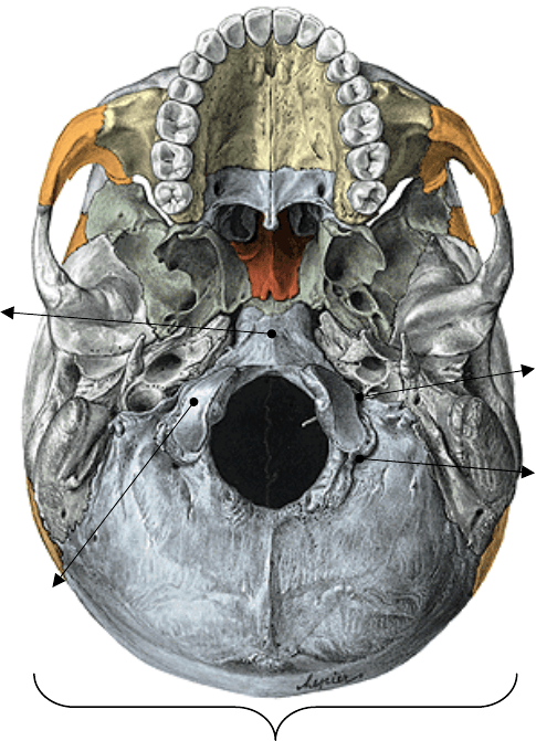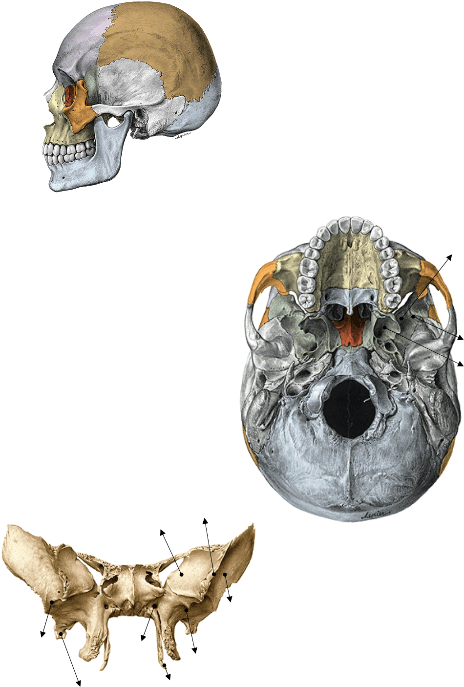 anterior de la base del cráneo. Los huesos de la cara junto con