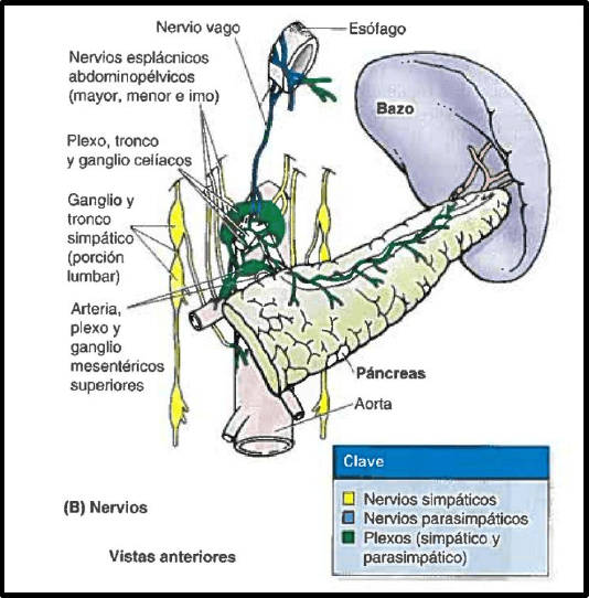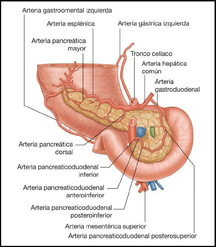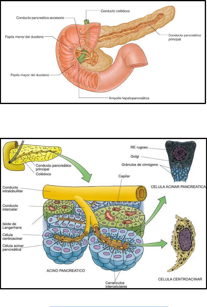 interlobulillares) que lo abordan por todas sus caras. Drena a los ácinos de la cola, el cuerpo y la