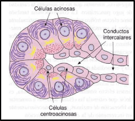 la neutralización del quimo gástrico ácido. Las enzimas son secretadas sólo por las células