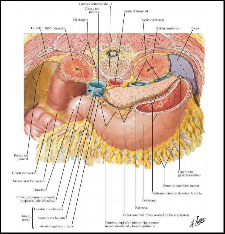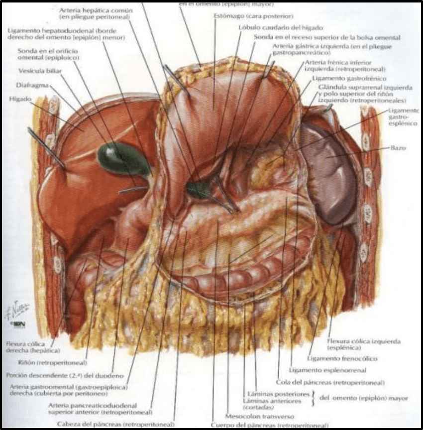 dirección hacia la cabeza del páncreas, ubicado en el centro del órgano. A nivel de la cabeza se