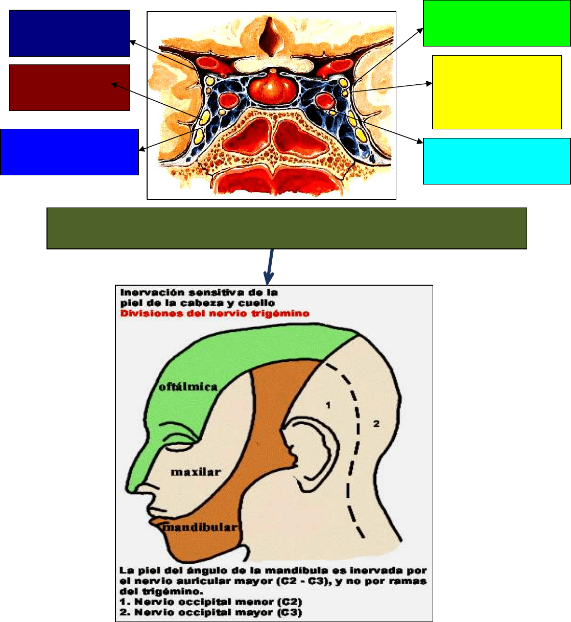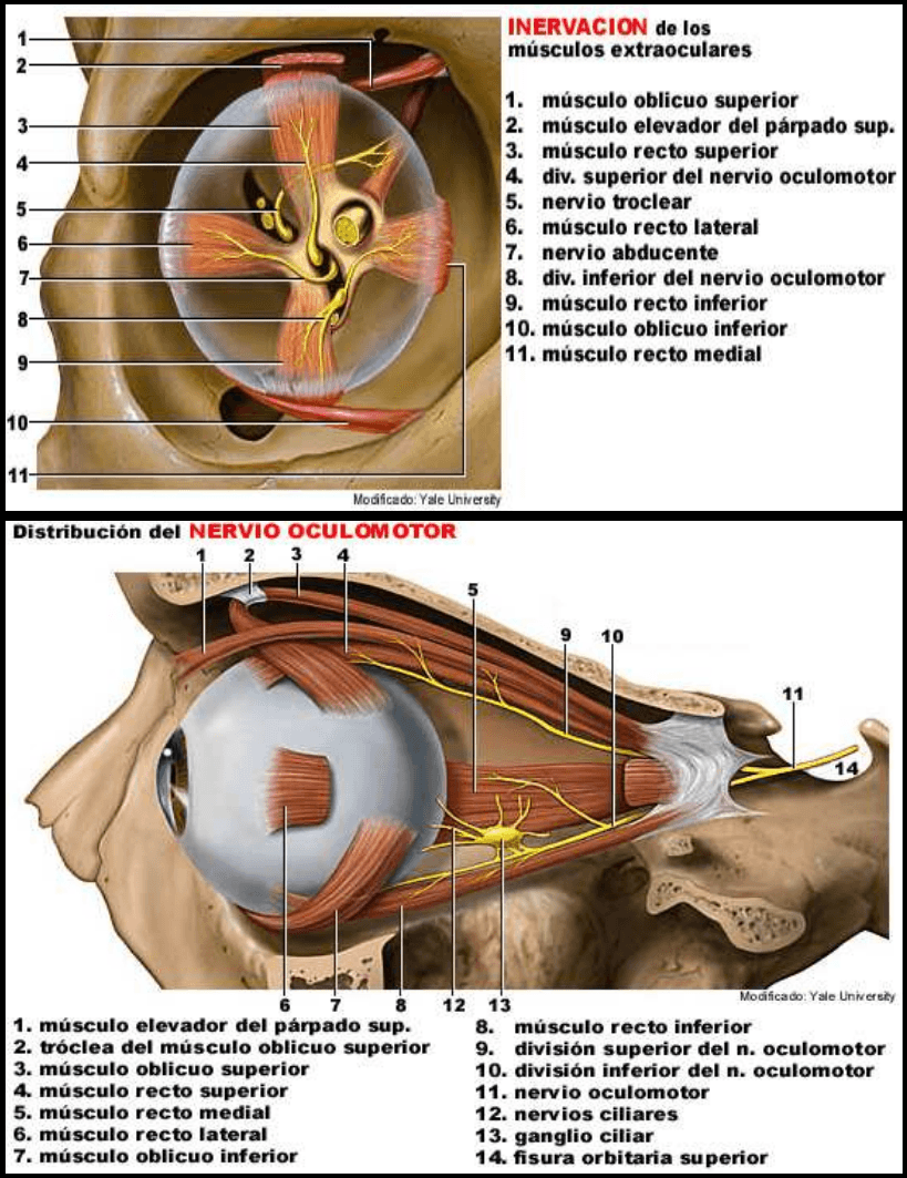 encima) y el nervio oftálmico (que esta por debajo). Llega a la hendidura esfenoidal y