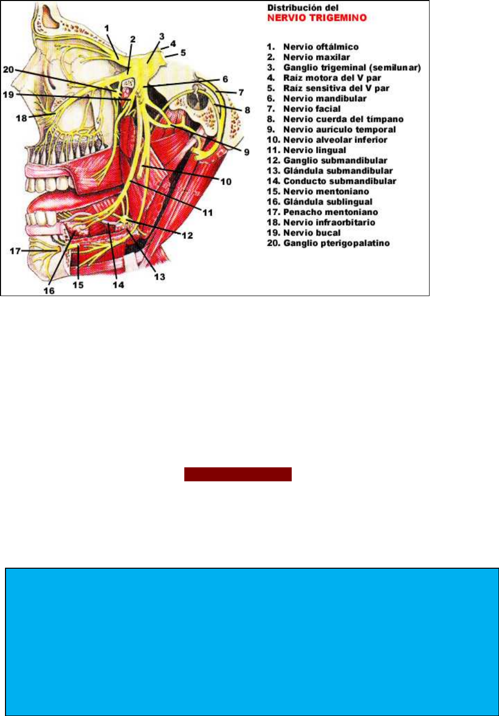 sensitiva del trigémino. El borde anteroexterno da origen a las tres ramas del trigémino,