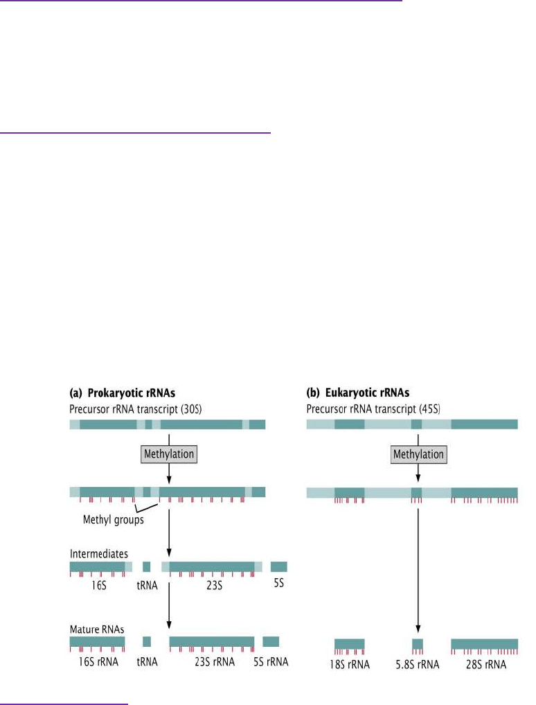 • Clivaje (como se cortan los segmentos de ARN ribosomales) y
