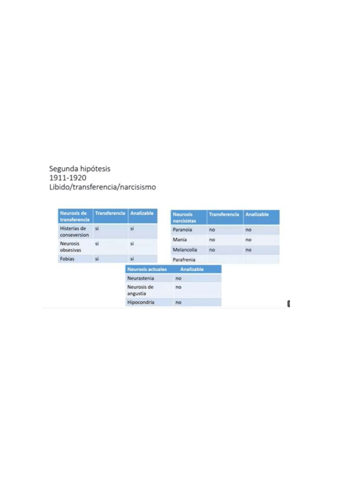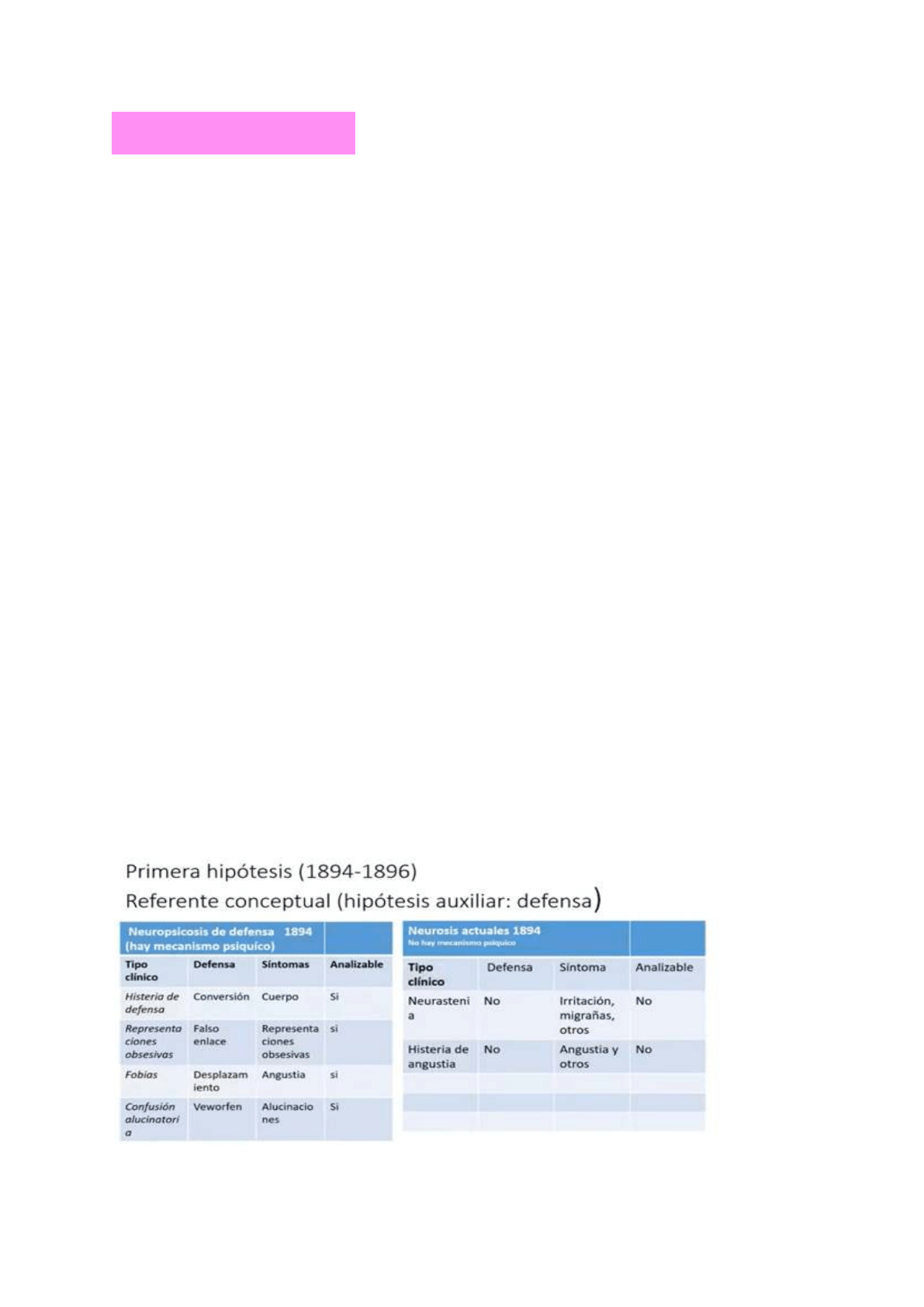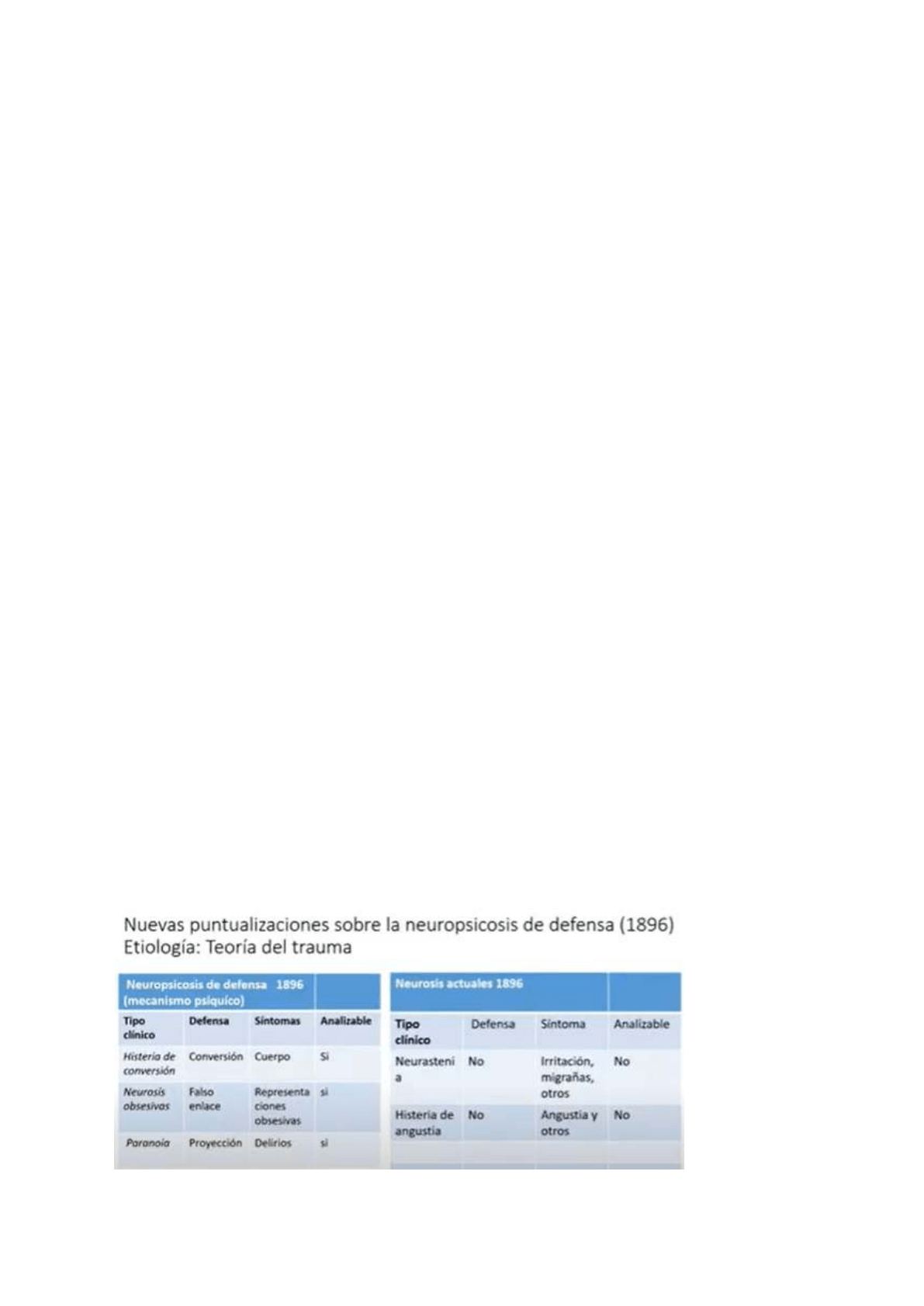osea, sería un grupo de neurosis que comparten la defensa. La primera columna aparece el