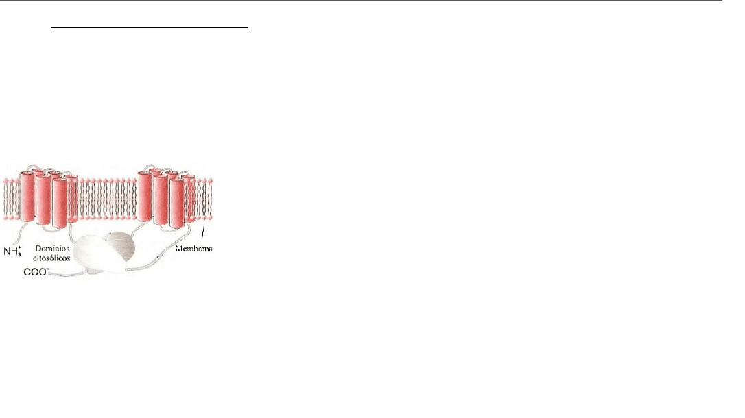decir un extremo n-terminal citosólico, luego continua con seis hélices α transmembrana, un dominio