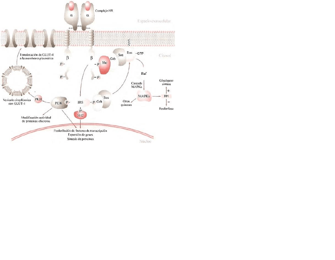 insulina) y activa la tirosina quinasa. A continuación se desencadena una cascada de fosforilaciones de