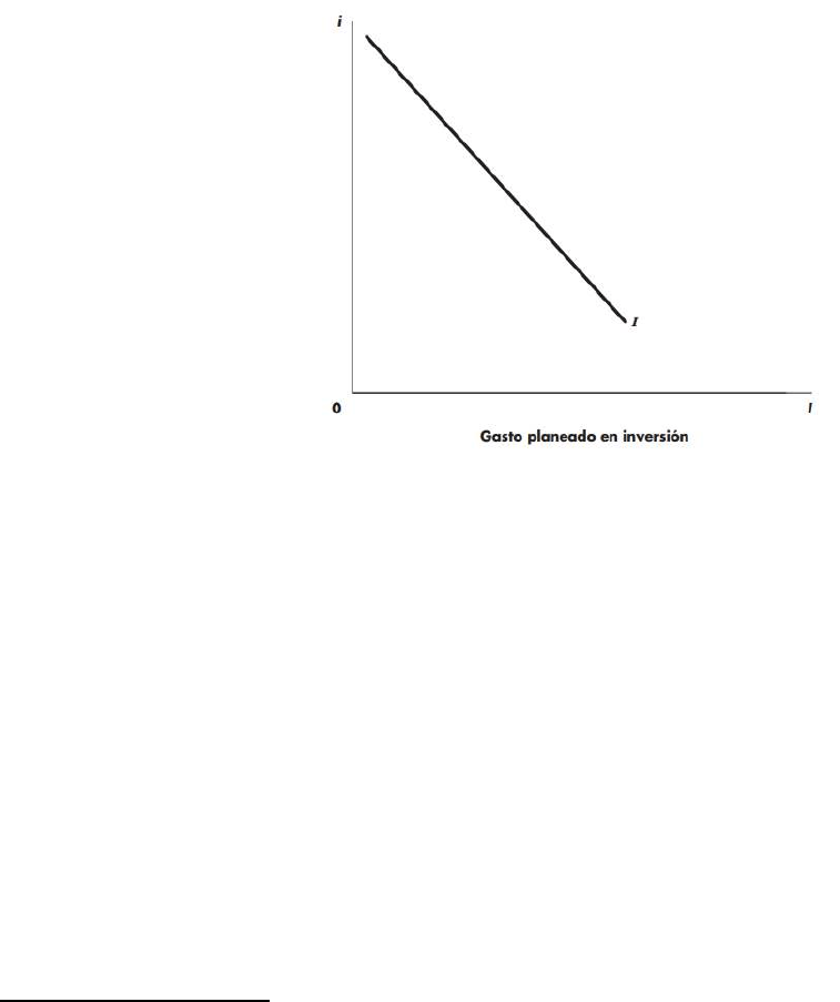 la inversión planeada y, por tanto, disminuye la demanda agregada, lo que baja el nivel de equilibrio
