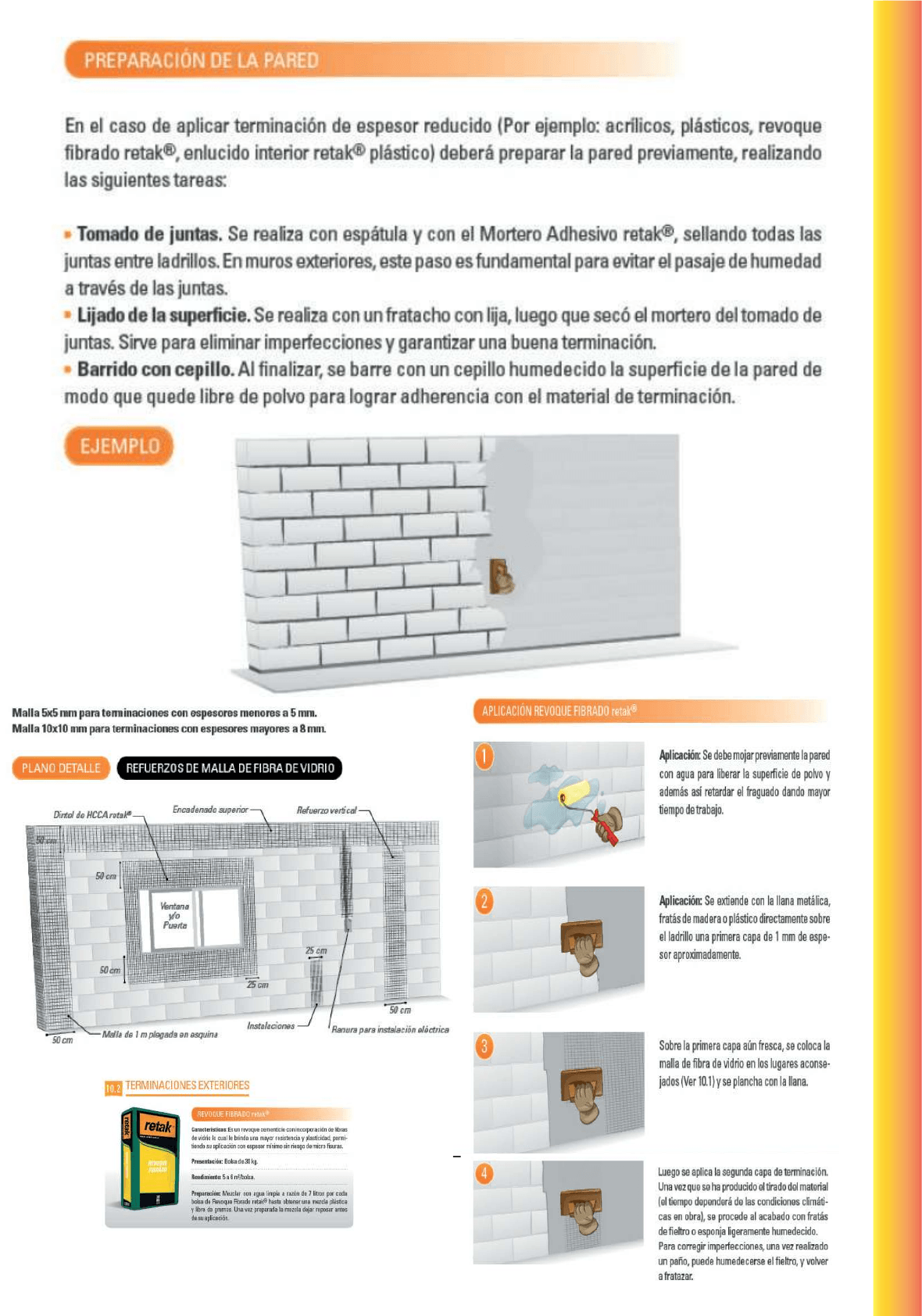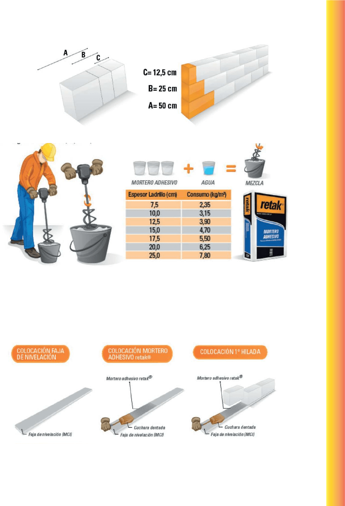 Para la preparación del mortero adhesivo retak: mezclar en un balde una parte de agua y 3