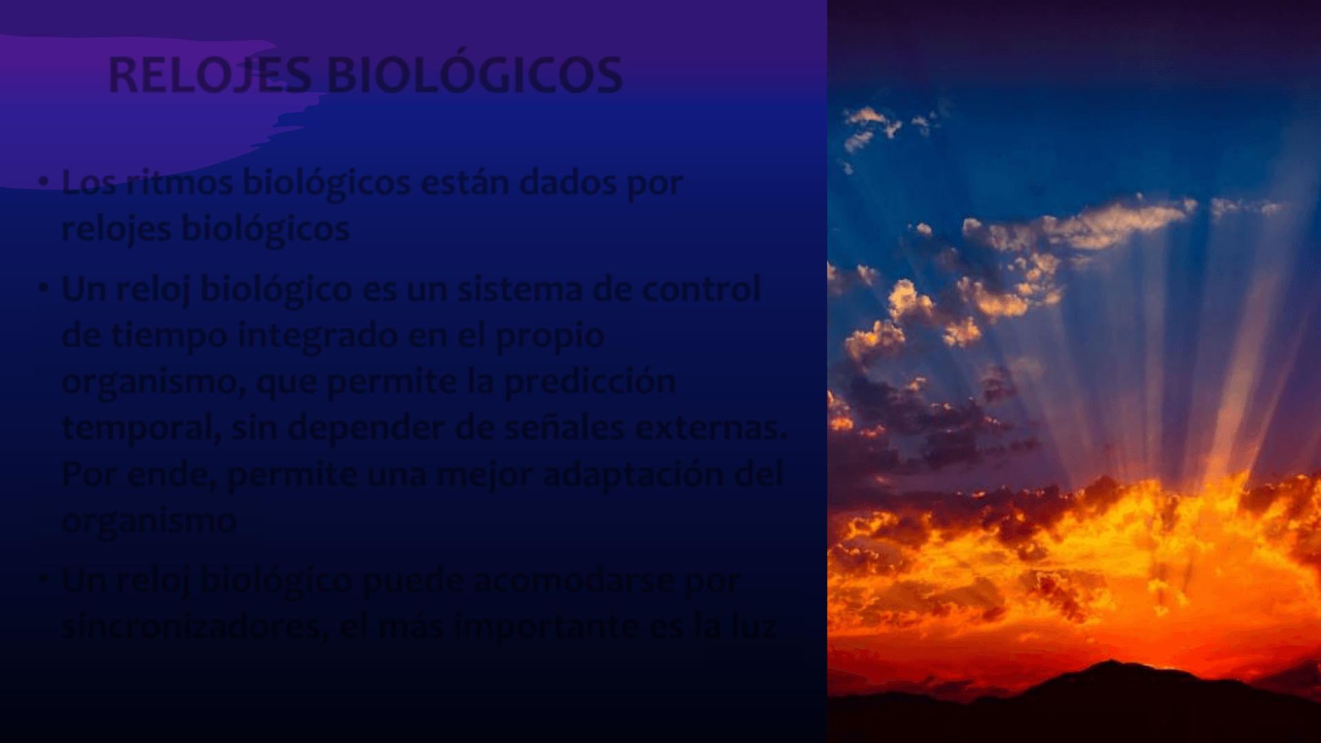 • Los ritmos biológicos están dados por