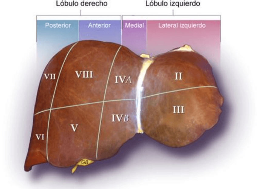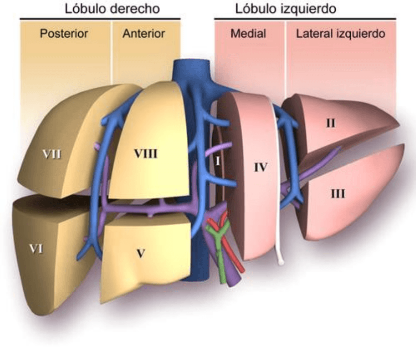 segmentos VI y VII (segmentos posteriores). El segmento I, o lóbulo caudado, se