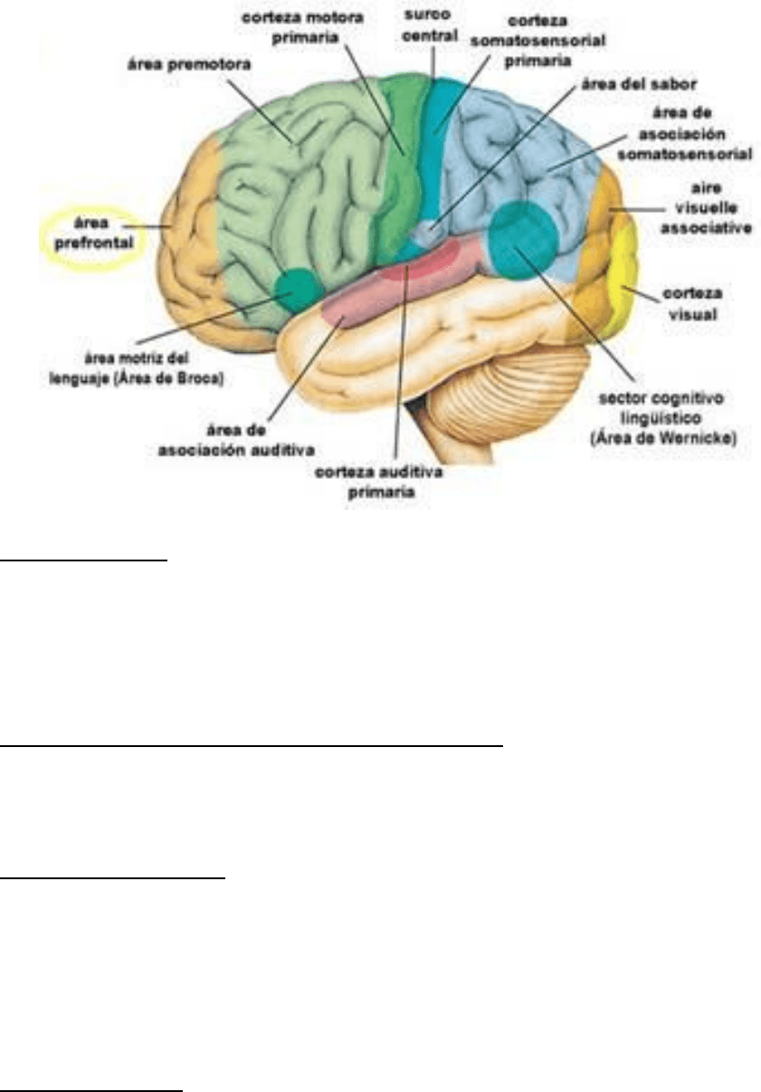 ● Área de Broca: está en la corteza frontal, fundamentalmente en el área motora. Esta
