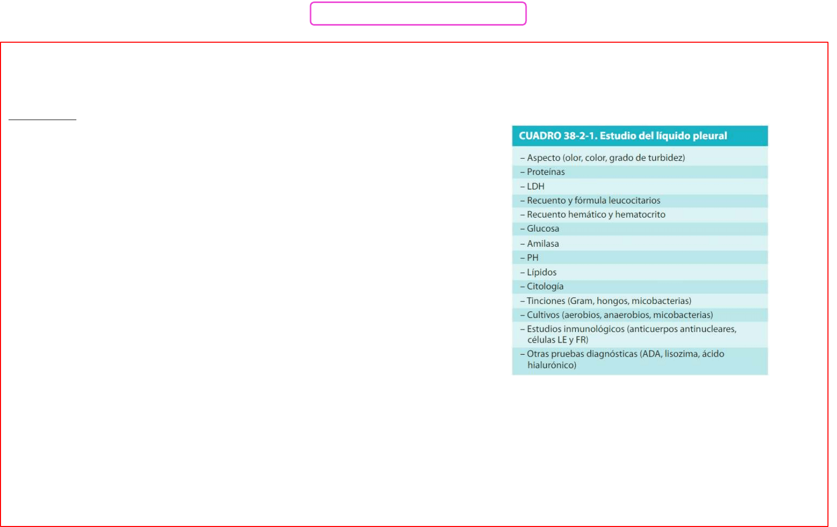 - Percusión: matidez con columna sonora (dx diferencial con DP)