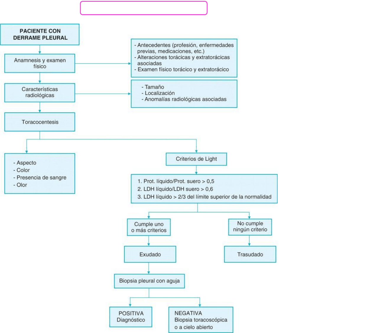 - Anamnesis: dolor, disnea variable