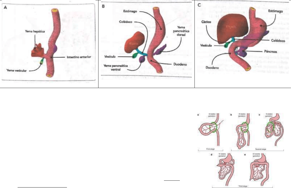Dentro del mesogastrio la yema crece, su porción craneal primordio hepático. Y la caudal primordio vesicular. Del