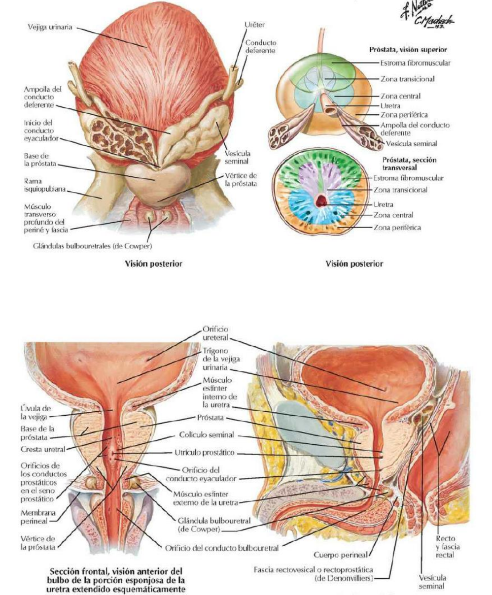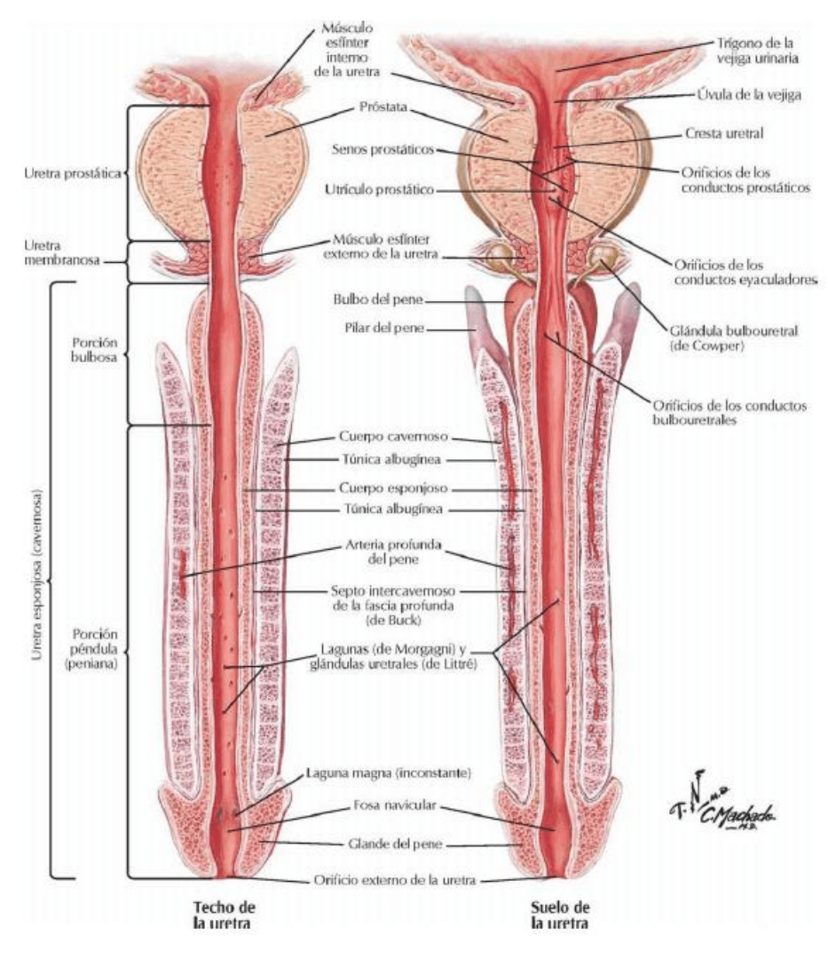- Las glándulas anexas: próstata y glándulas bulbouretrales.