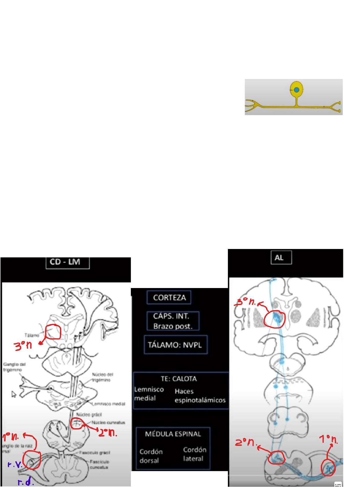 ● Soma: núcleo ventral posterolateral (NVPL) del tálamo. Se encuentran en el tálamo