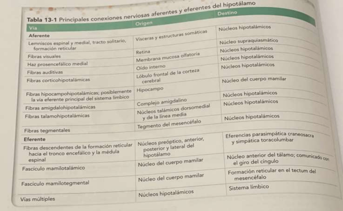 CONEXIONES NERVIOSAS EFERENTES DEL HIPOTÁLAMO