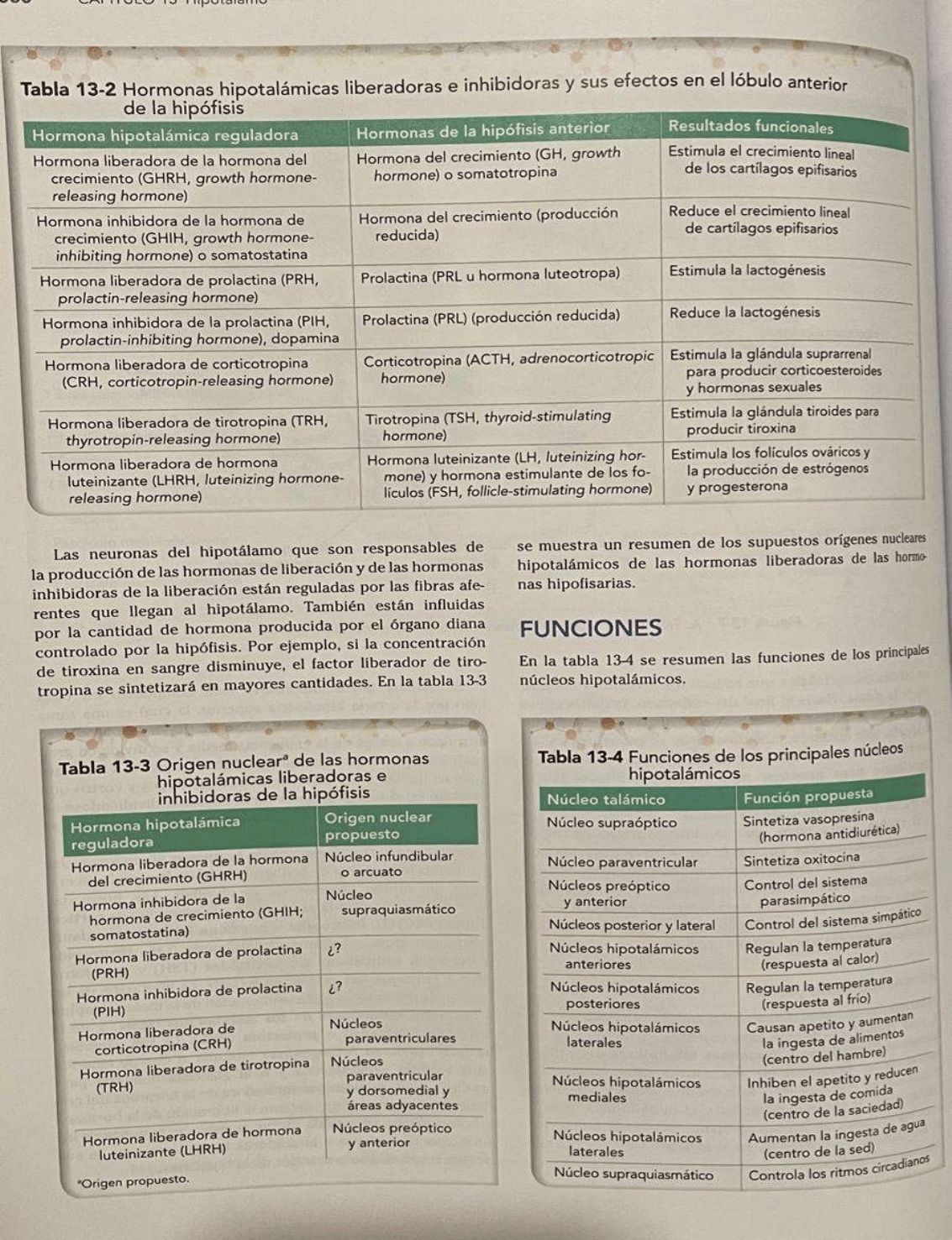 de la producción de hormonas liberadoras y hormonas inhibidoras de la liberación. Estas hormonas se