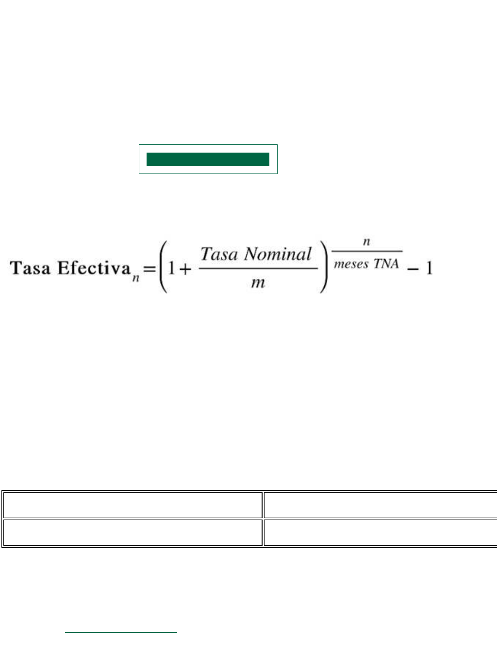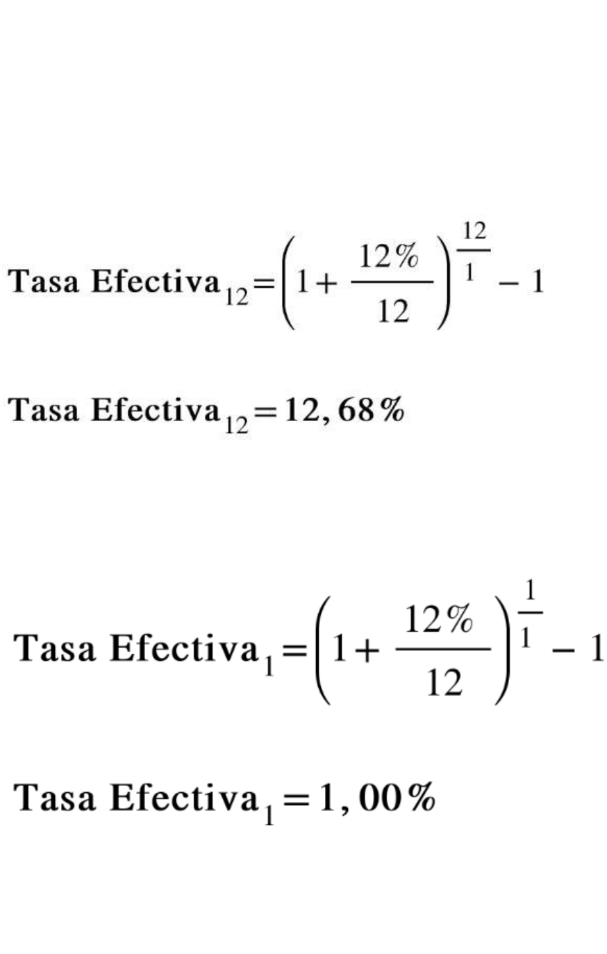 o Fórmula para pasar de Tasa Nominal a Tasa Efectiva