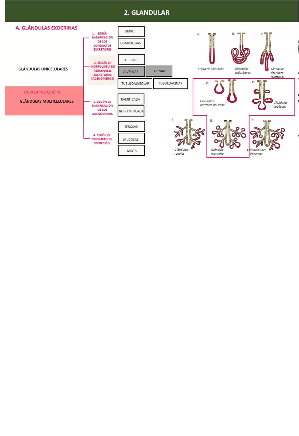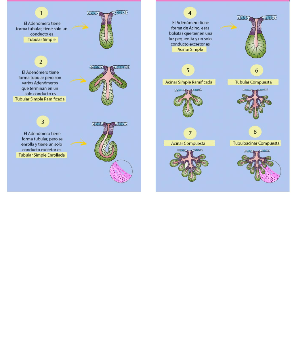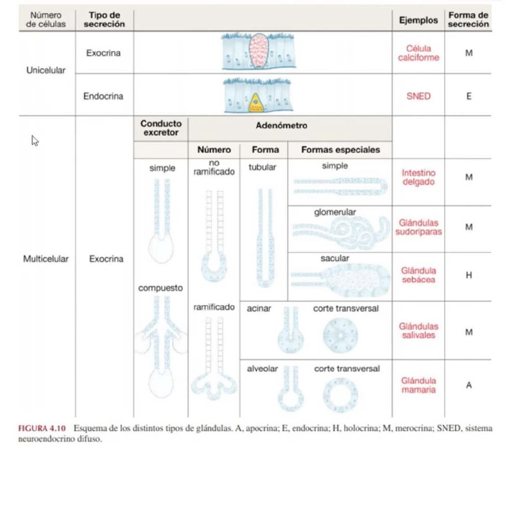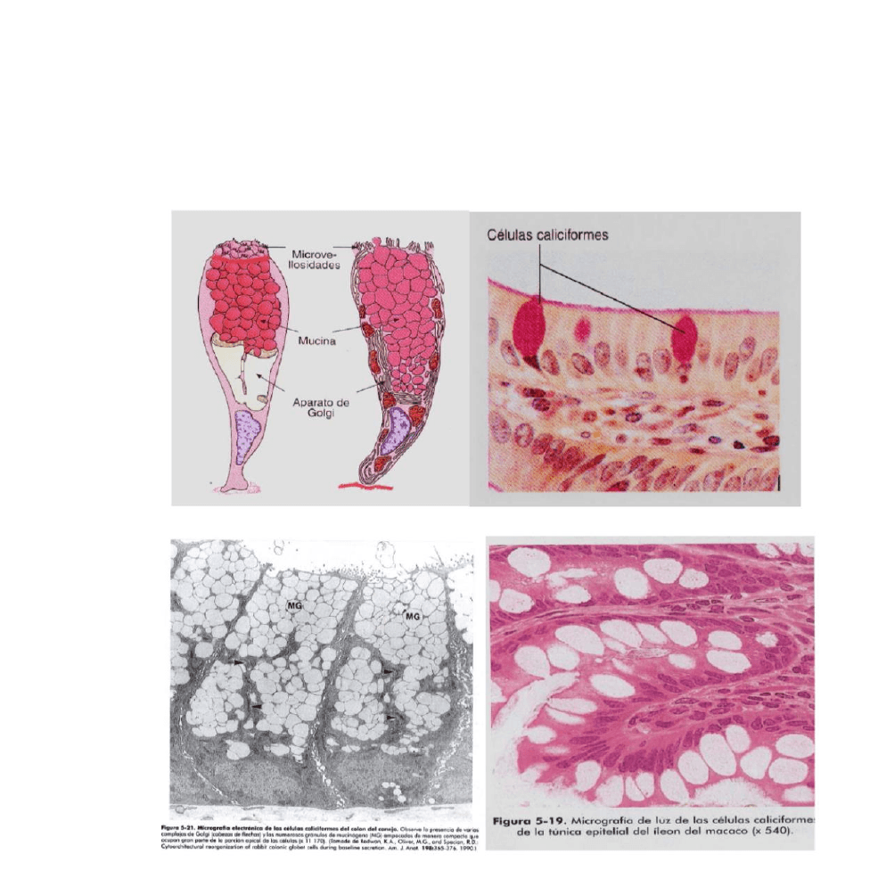 Células caliciformes y glándulas del páncreas, sudoríparas y parótidas.