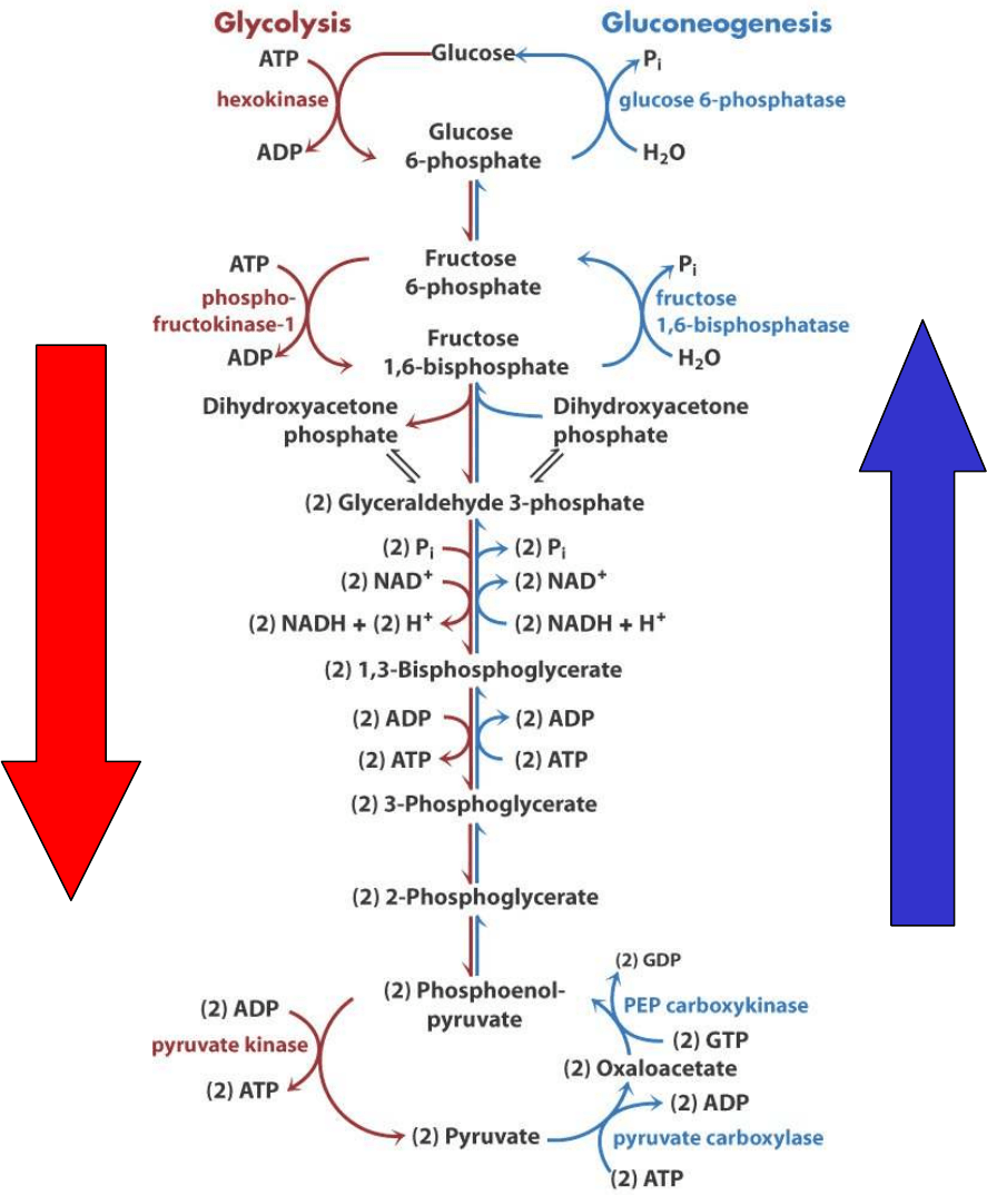 Sin embargo, la gluconeogénesis no es el proceso inverso de la