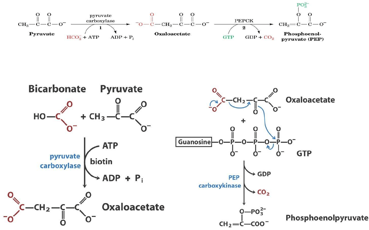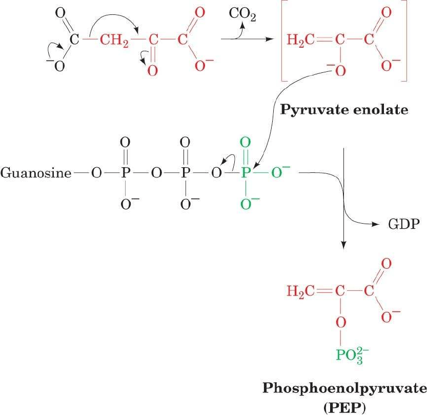 Oxalacetato + GTP Fosfoenolpiruvato + GDP + CO