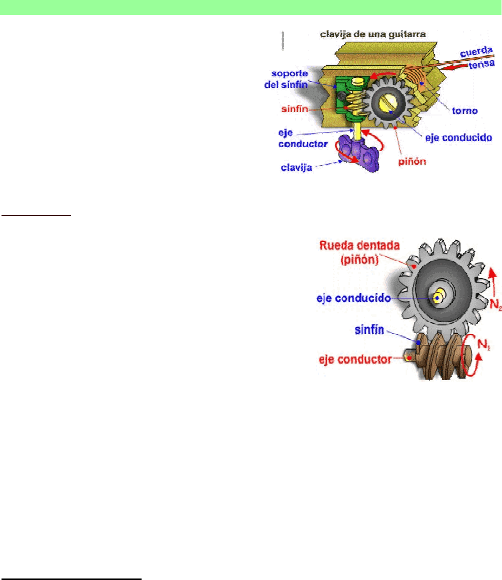 ganancia mecánica. Téngase en cuenta que el sinfín solamente tiene un diente