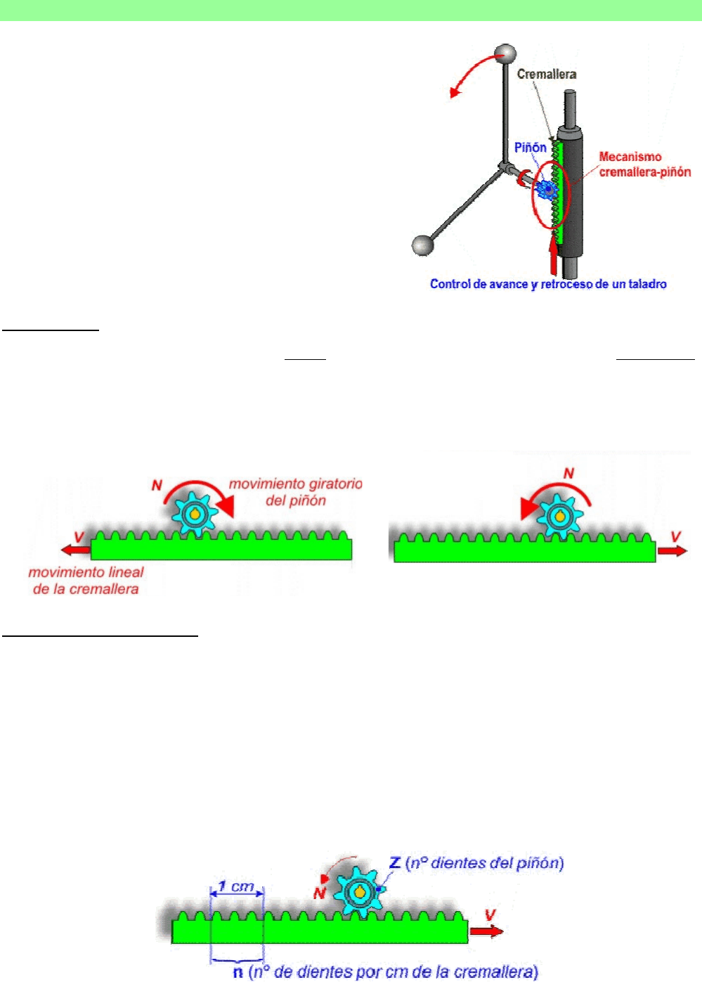 mientras que el piñón puede tener los que queramos. El mecanismo es irreversible,