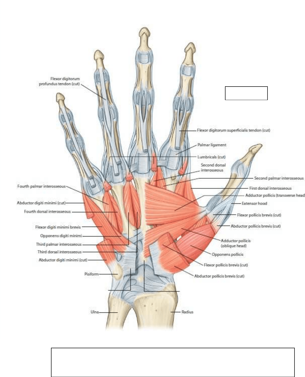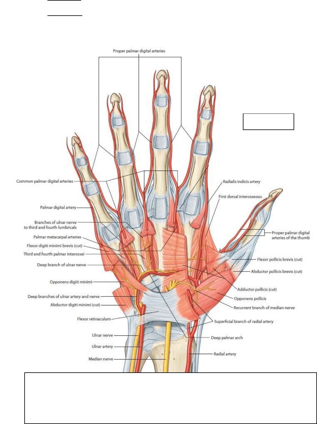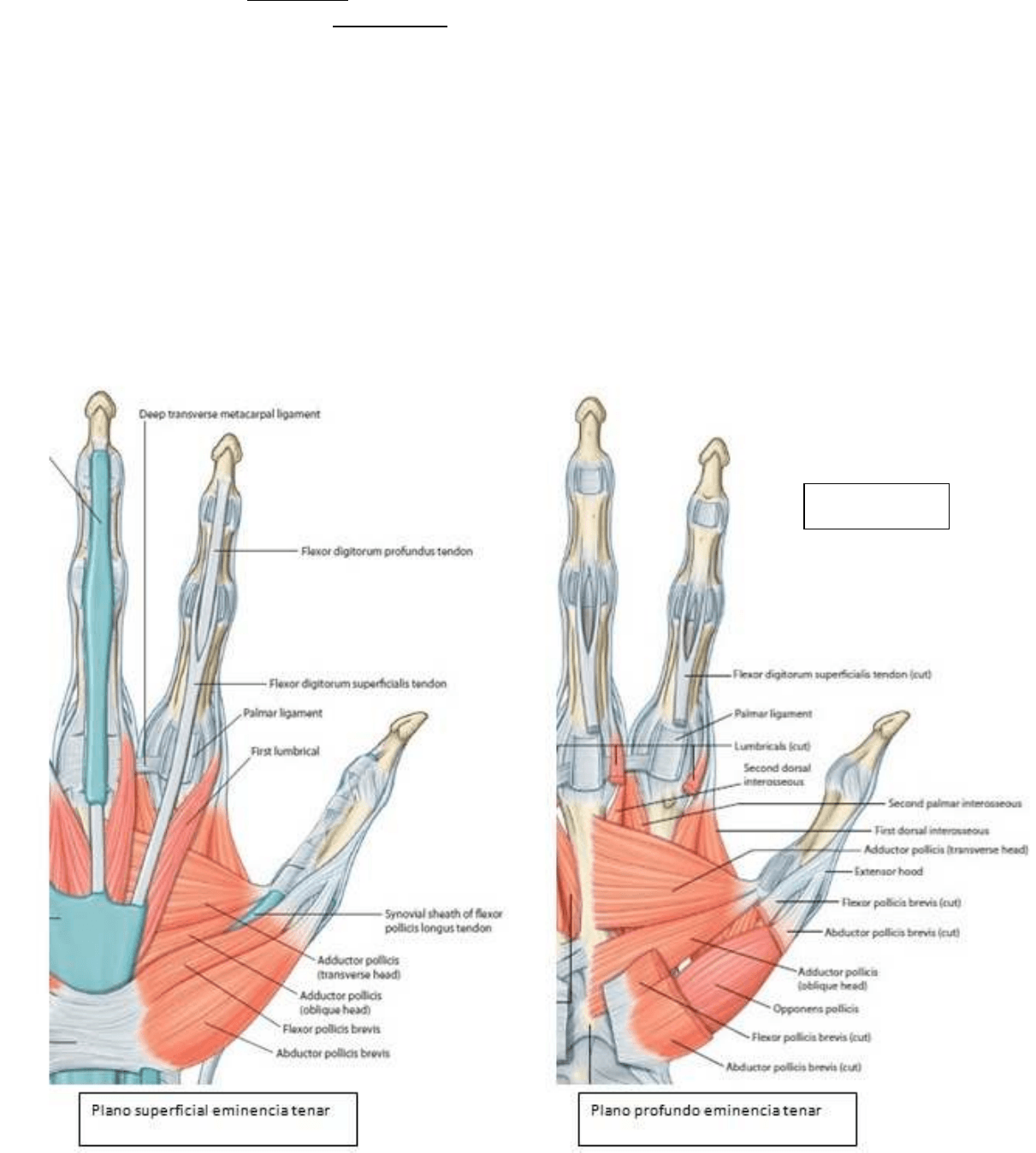 superficial. Se puede ver como inmediatamente por debajo de la aponeurosis esta el arco palmar superficial.