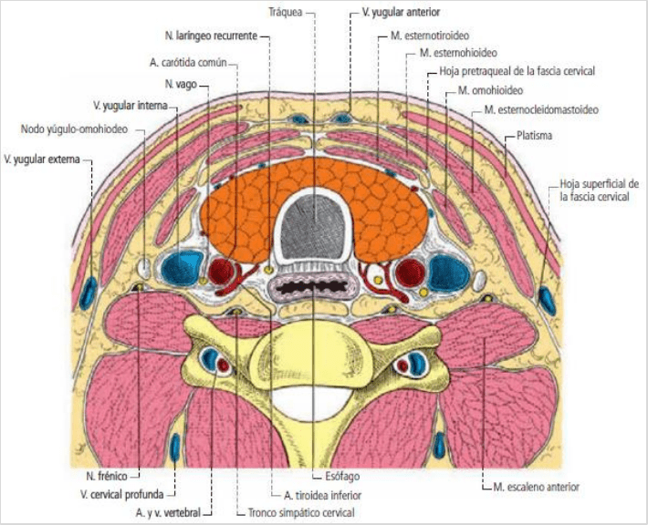 → Vaina visceral: tráquea, esófago y nervios laríngeos recurrentes.