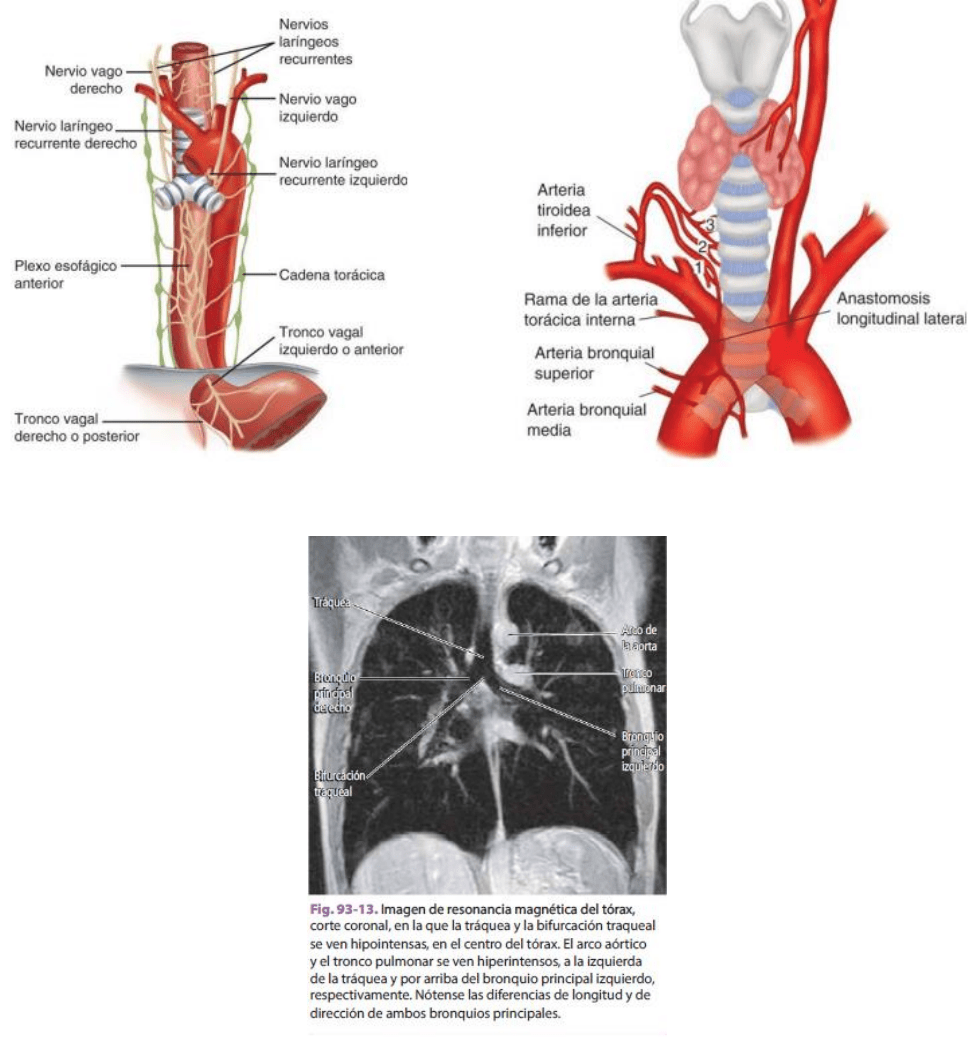 - La tráquea es perpendicular al plano de la abertura torácica superior.