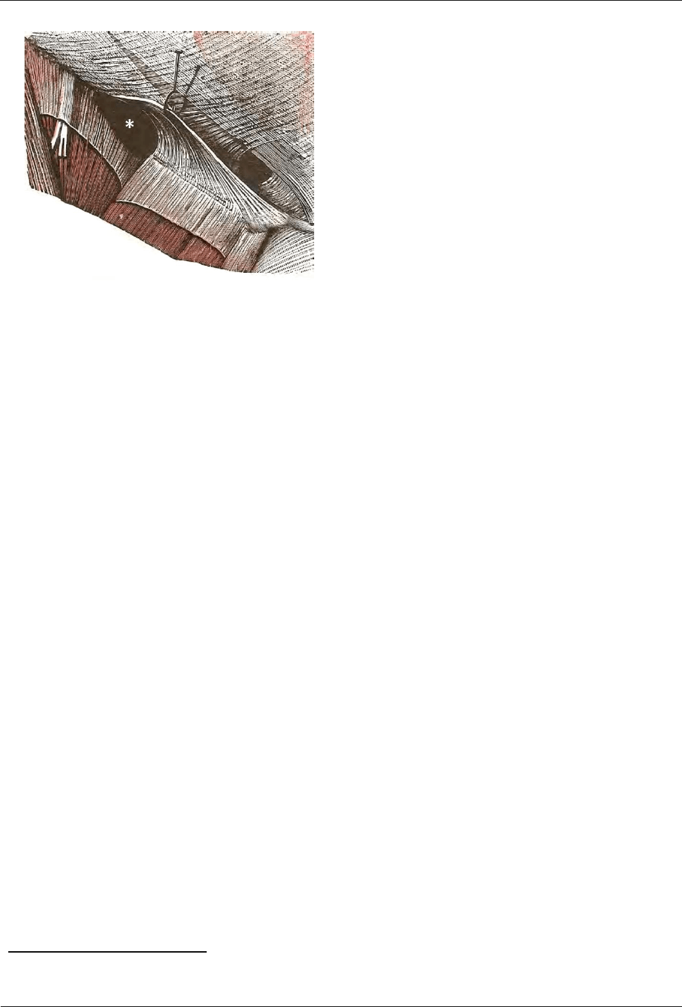 extienden formando un pequeño abanico, cuyos fascículos divergentes van a fijarse, en parte, en la