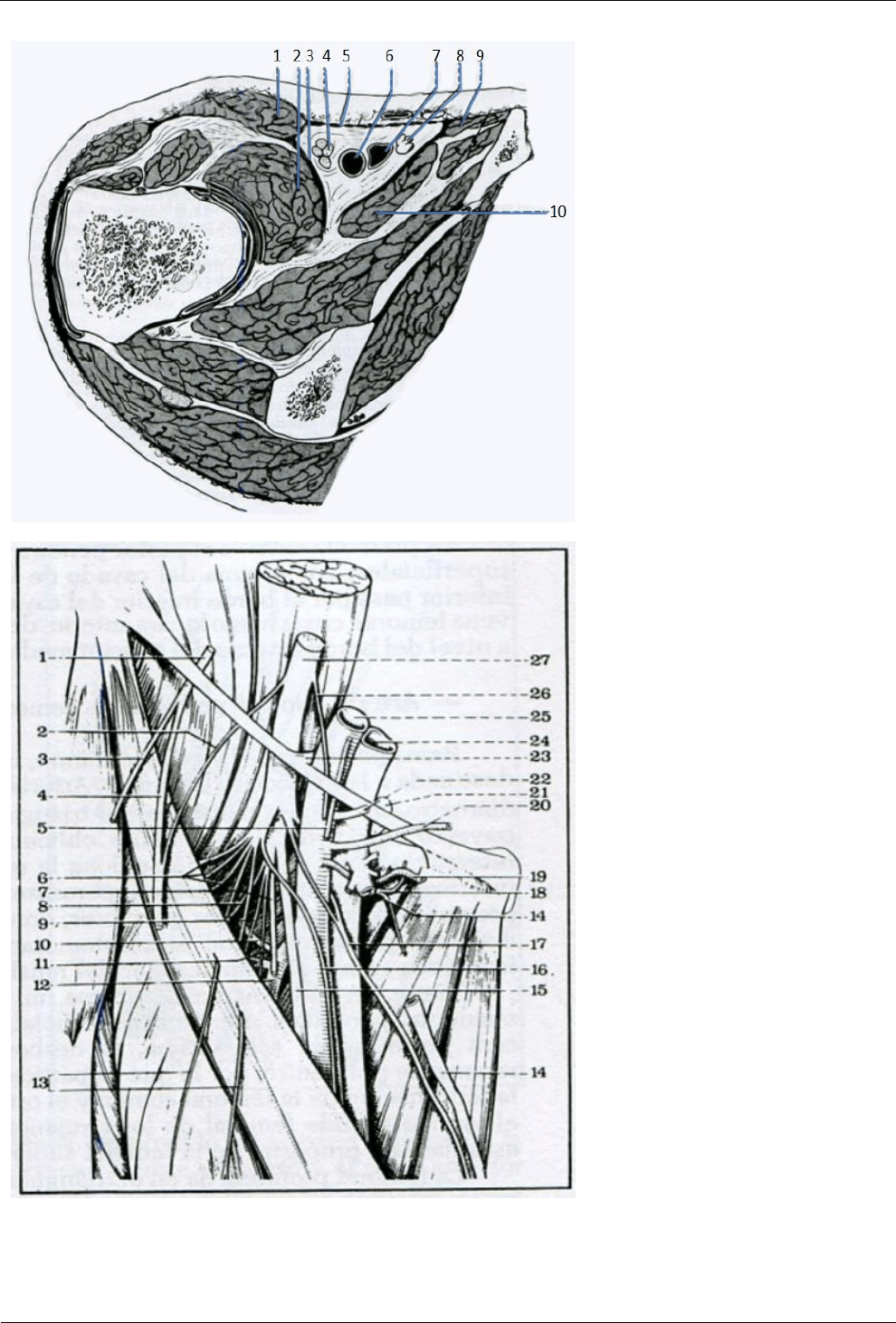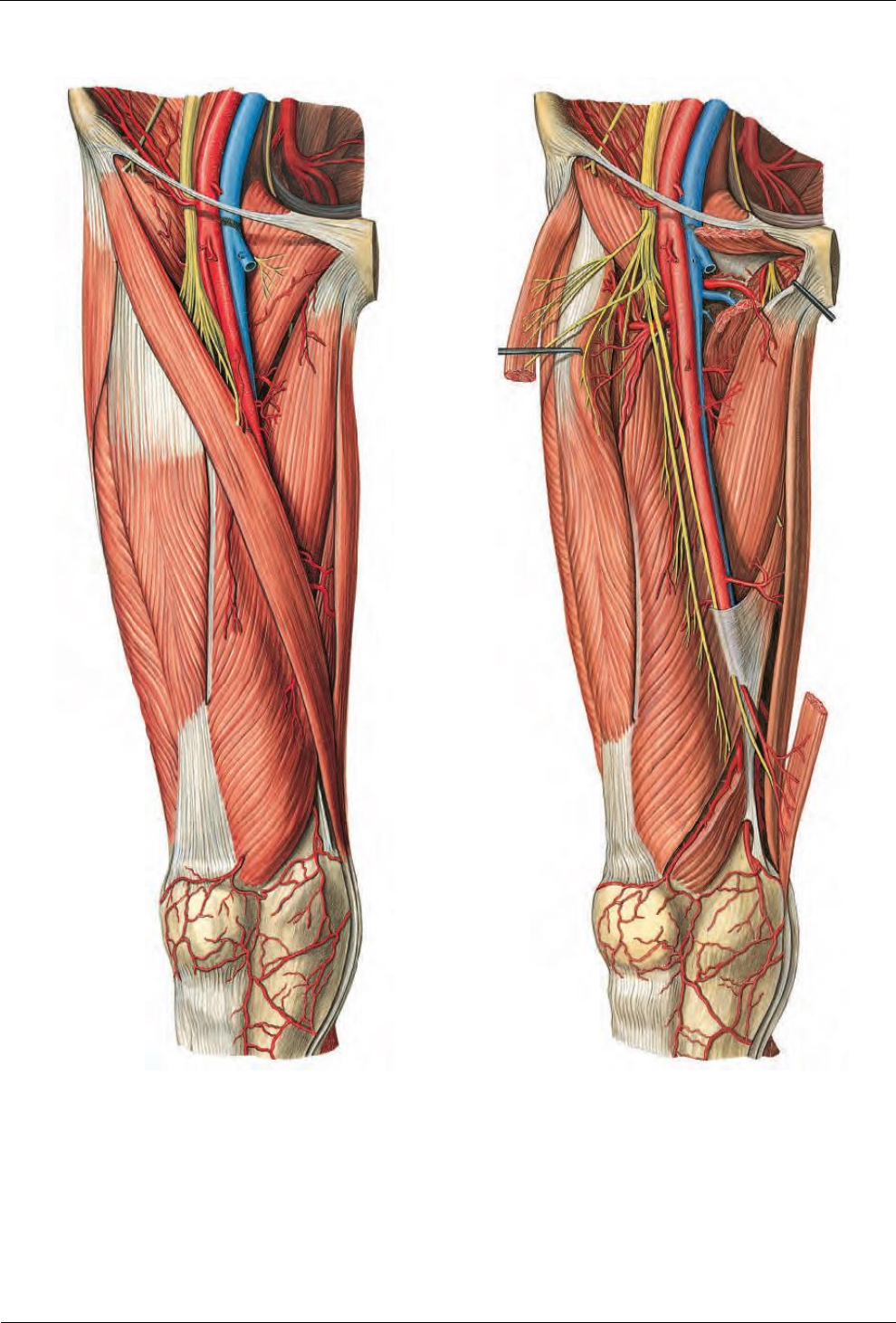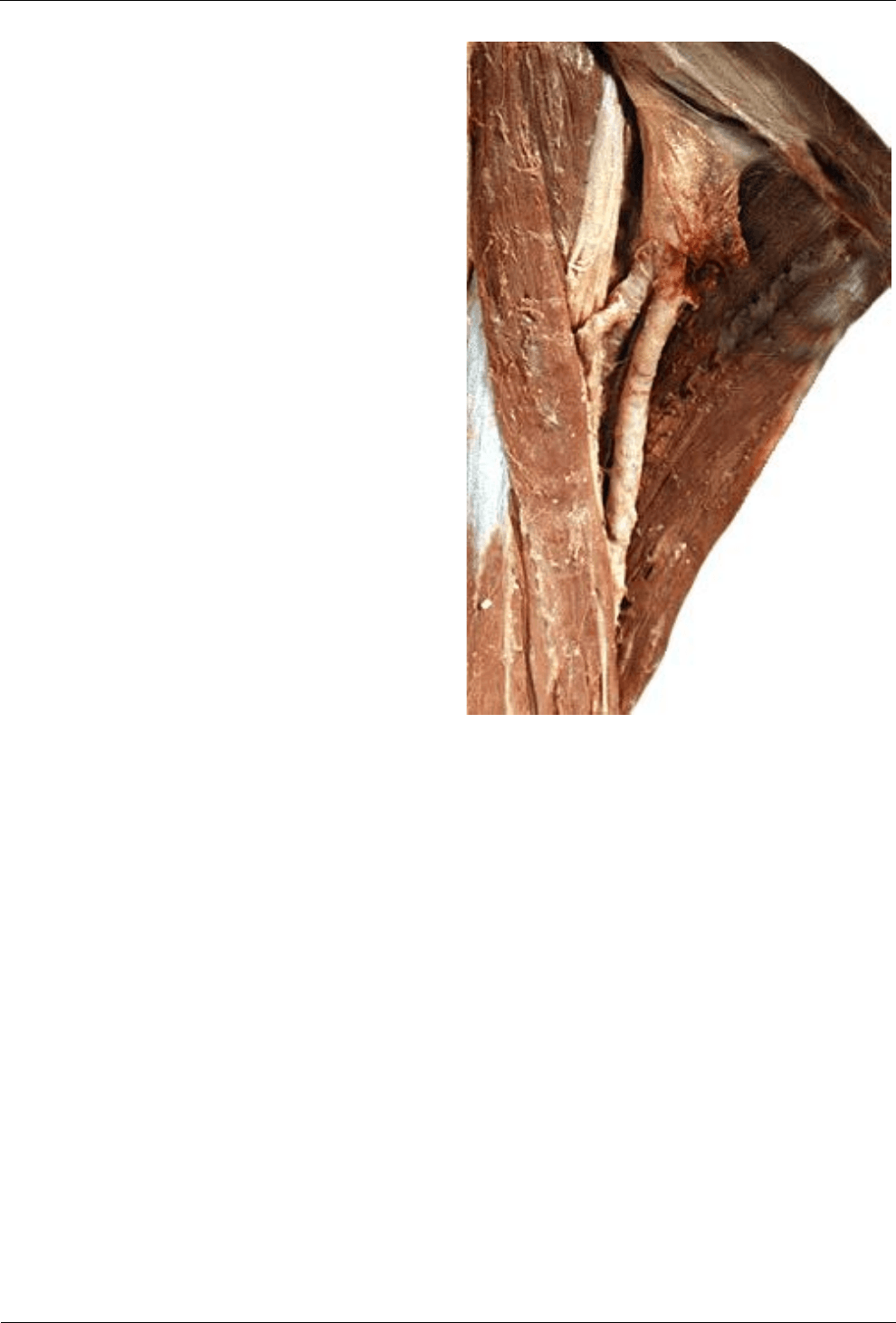separándose de la fascia para dejar un angosto espacio por el que discurren los vasos circunflejos