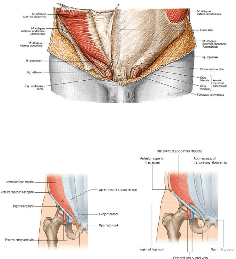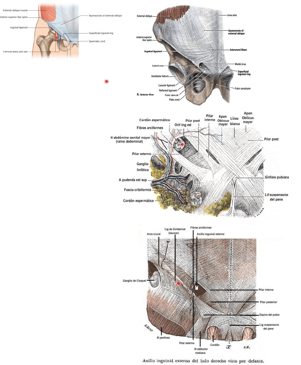 La aponeurosis del oblicuo mayor forma la pared anterior del trayecto inguinal, la pared o borde