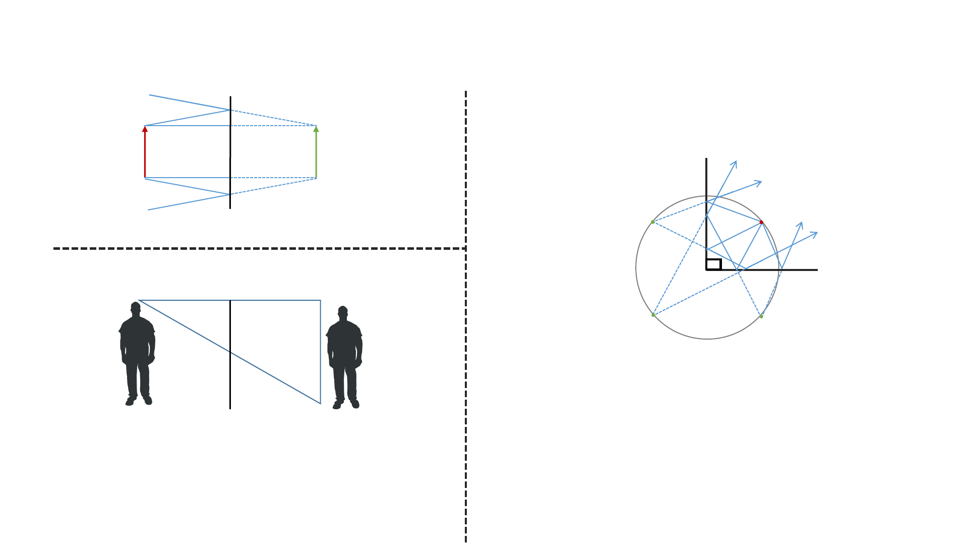 Al ser el ángulo entre ambos espejos 90°, va a haber 3 imágenes (ver en